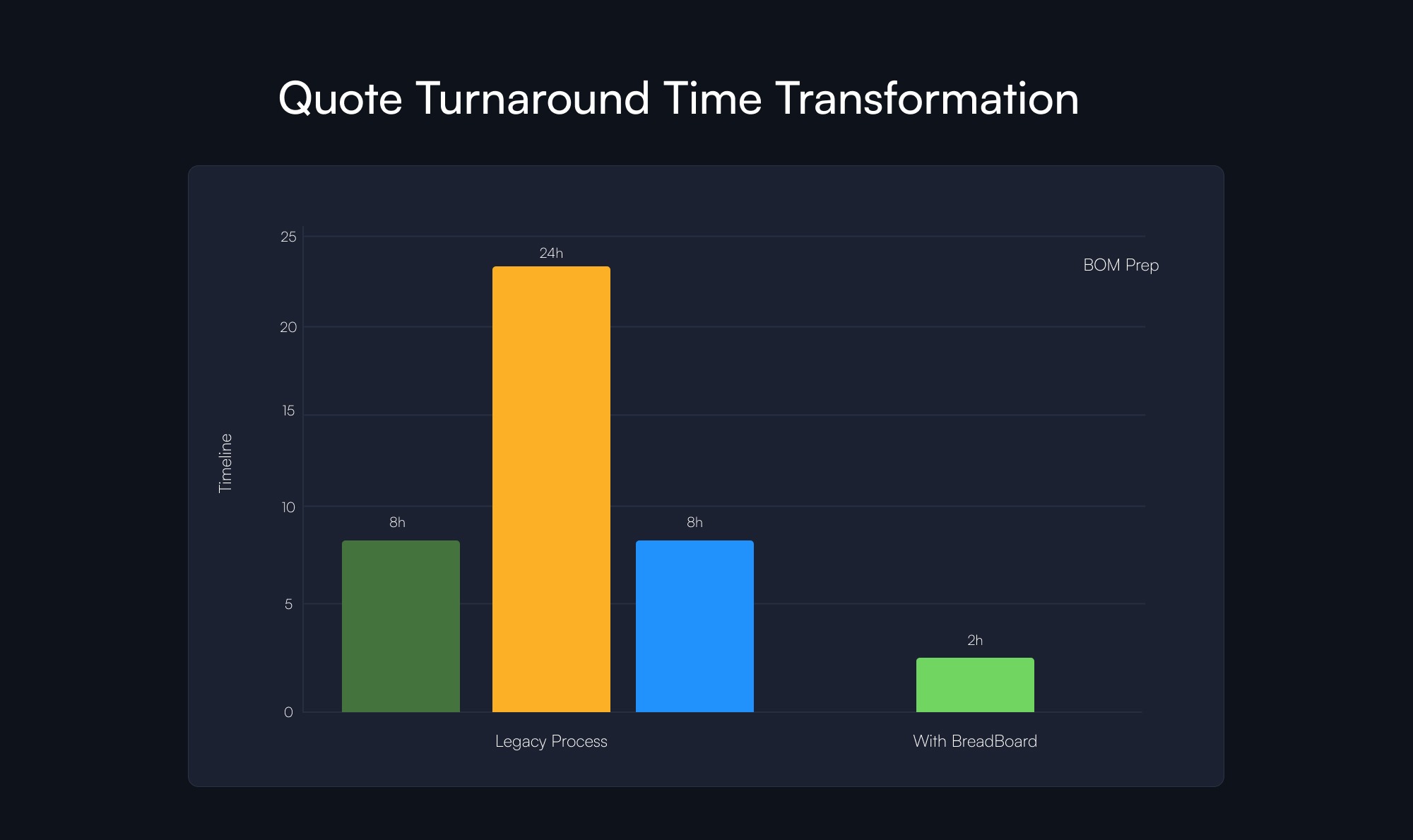 In a competitive bid situation, the first comprehensive and professional quote often wins. By reducing quote time by up to 80%, Breadboard enables EMS partners to be more responsive, bid on more opportunities, and ultimately increase their booking rates by 15% or more.